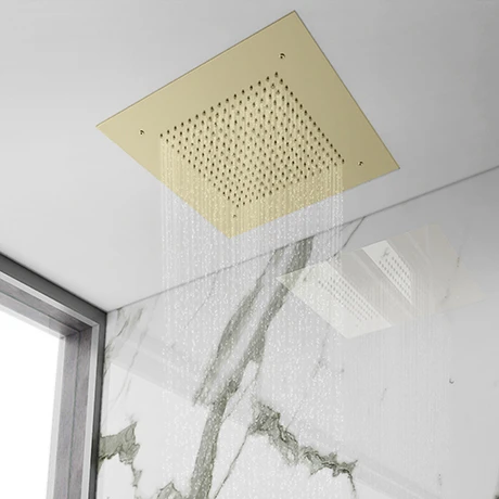 Create your ultimate showering experience with the sleek Arezzo recessed embedded ceiling mounted shower head. This 400 x 400mm Square Recessed Shower Head is ideal for those wanting to create a minimalist look and comes finished in a eye catching brushed brass. Manufactured from high quality materials this stunning large overhead brushed brass shower is perfect for giving you a luxury showering experience.