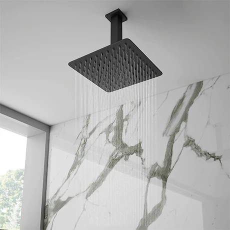 The Arezzo 200 x 200mm square matt black ceiling mounted shower head with arm, it’s chic minimalist design will bring a touch of sophistication to any bathroom. Our range of Shower heads are ideal for renewing the style of your bathroom affordably.
