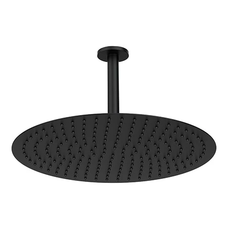 The Arezzo 400mm round matt black ceiling mounted shower head with long arm, it’s chic minimalist design will bring a touch of sophistication to any bathroom. Our range of Shower heads are ideal for renewing the style of your bathroom affordably.