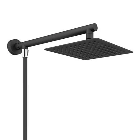 The modern wall mounted Arezzo 200mm square ultra-slim overhead rainfall shower with 1.75m flexible hose, designed to compliment matt black finished bathroom fixtures. Offers a stylish minimalist design that looks great in any setting. Suitable for all plumbing systems and features rub clean nozzles. Our range of Shower heads are ideal for renewing the style of your bathroom affordably. Stainless steel construction with a stunning matt black finish. High quality flexible shower hose measures 1.75m long and fits standard hose connections (1/2″ BSP).