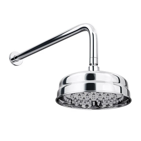 The traditional Belmont 7 Inch chrome shower rose and arm, create a opulent feel in your bathroom with this classically styled rose shower head with wall mounted arm. Manufactured from brass with a polished chrome plated finish, comes with a 2 year guarantee.