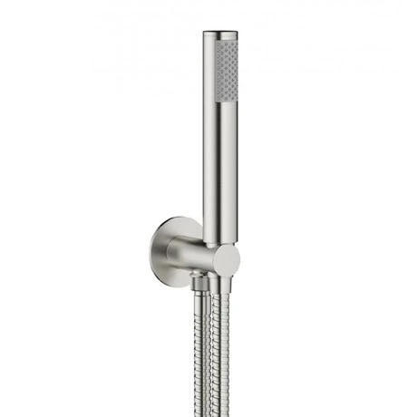 The MPRO wall mounted shower kit is designed to be used with a concealed shower valve. It features a 1.5m hose and single spray handset which sits in an outlet elbow bracket. Manufactured from brass and finished in an exquisite brushed stainless steel effect finish.