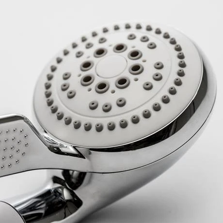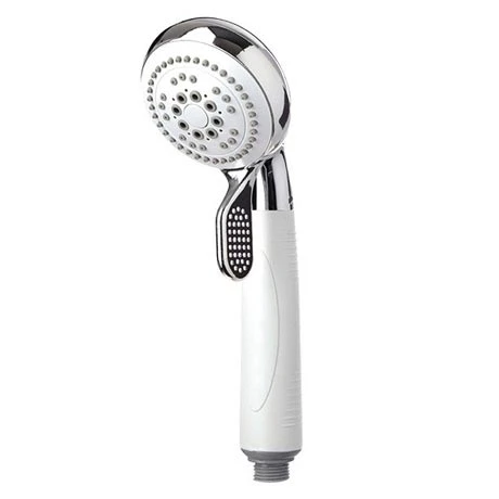 Boasting a sleek white and chrome finish, this four function shower head radiates style. To enhance usability, a tactile rubber handle and large lever makes gripping and switching functions easier.