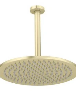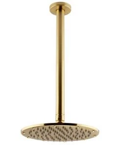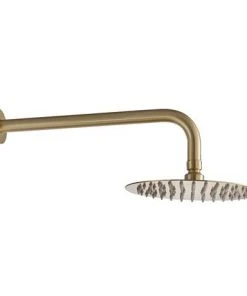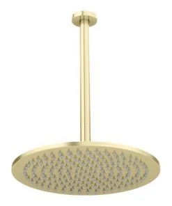 Arezzo Fluted Round 200mm Brushed Brass Fixed Shower Head + Wall Mounted Arm