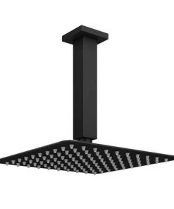 Arezzo Matt Black 200 x 200mm Thin Square Shower Head + Ceiling Mounted Arm