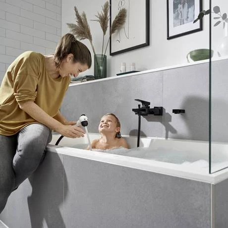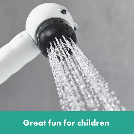 Swap tears for happy moments in the bath and shower with the hansgrohe Jocolino children’s shower handset. Jocolino has two spray types that are easy to switch between with a twist of the ergonomic and insulated handle. The Rain spray is soft and soothing, while MonoRain can be used to rinse out shampoo more effectively so that it doesn’t get in the little one’s eyes. Available in three popular animal designs: crocodile, zebra and lion. With googly eyes for even more fun.