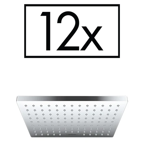 A pack of 12 x shower heads for large or commercial projects. The Vernis Shape 230 shower head can be either installed on the wall with a shower arm, or fitted overhead on the ceiling. It’s Rain spray is perfect for rinsing shampoo out of your hair while the QuickClean rub clean nubs loosens any limescale deposits making sure your hand shower looks beautiful, and stays working for longer.