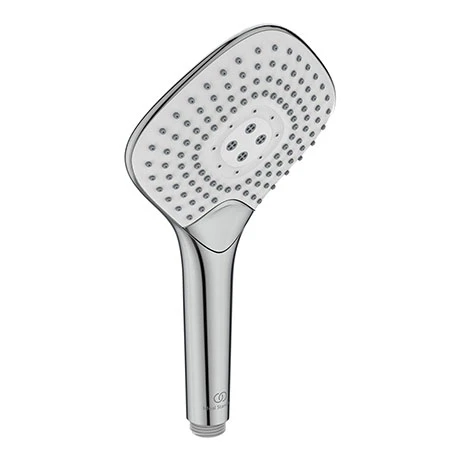 A 3 function diamond Ø125mm handspray featuring 3 shower modes, selectable via a single push button. Suitable for high-pressure installations.