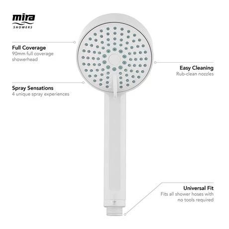 Mira showerheads are engineered to deliver your ideal showering experience. This Beat Four Spray Showerhead in White is the perfect upgrade for your existing showerhead. It features rub-clean nozzles on the spray face, for easy cleaning and limescale removal. Compatible with all shower hoses and easy to fit.