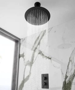 Arezzo Matt Black 400 x 400mm Recessed Ceiling Mounted Square Shower Head