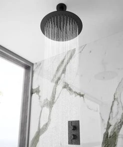 Arezzo Matt Black 400mm Thin Round Shower Head + 150mm Ceiling Mounted Arm