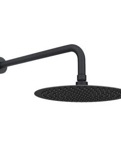 Arezzo Matt Black 300mm Thin Round Shower Head with Wall Mounted Arm