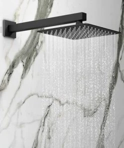 Arezzo Matt Black 200 x 200mm Square Shower Head with Wall Mounted Arm