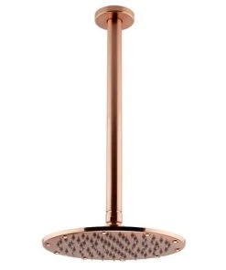 Arezzo Rose Gold 195mm Thin Round Shower Head + 300mm Ceiling Mounted Arm