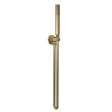 Add the perfect finishing touch to your bathroom with the Venice brushed brass modern round outlet elbow with parking bracket, shower flex & rectangular handset.